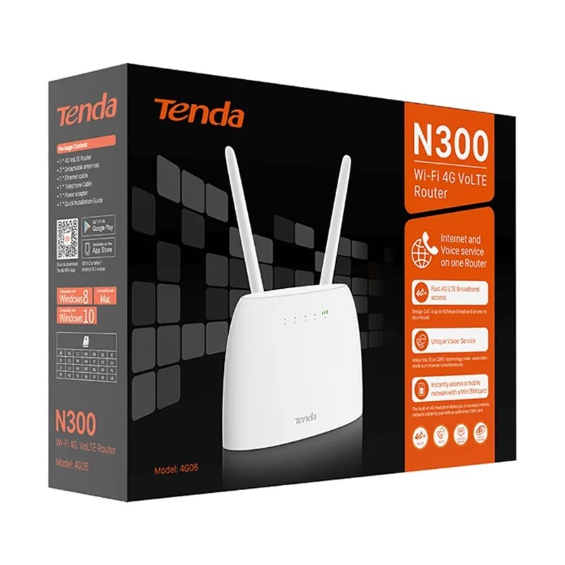 مودم 4G06 یک محصول جدید وبا کیفیت از شرکت تندا (Tenda) است که تنها با قرار دادن یک سیم کارت نسل چهارم (4G) و استفاده از شبکه LTE Cat4 در آن می‌توانید از اینترنت پرسرعت استفاده کنید. با چنین دستگاهی، می‌توانید بسته‌ی داده‌ی سیم‌کارت خود را فعال کرده و از اینترنت موبایل بهره ببرید. حداکثر سرعتی که برای دانلود و آپلود درون شبکه 4G برای این دستگاه ارایه شده، 150 مگابیت بر ثانیه و 50 مگابیت بر ثانیه است. هم به صورت باسیم و هم بی‌سیم کار می‌کند. شما می‌توانید از قابلیت بی‌سیم این دستگاه در فرکانس 2.4 گیگاهرتز استفاده کنید یا در صورت نیاز، یکی از دو پورت LAN آن‌ را به خدمت بگیرید. در پنل پشتی مودم روتر، 2 عدد پورت LAN وجود دارد که یکی از آن‌ها پورت LAN/WAN است. این پورت به شما کمک می‌کند دستگاه‌هایی از قبیل مودم کابلی (فاقد قابلیت وایرلس‌) را به این دستگاه جدید وصل و به کمک آن حتی از اینترنت ADSL هم استفاده کنید. Tenda 4G06 یک مودم 4G رومیزی است که علاوه بر فراهم کردن اتصال بی‌سیم برای کاربر، یک پورت تلفن (RJ11) برای وصل کردن مودم به دستگاه تلفن خانگی هم در اختیارتان خواهد بود تا در صورت نیاز، بتوانید از طریق سیم‌کارت و با استفاده از تلفن خانگی مکالمه تلفنی داشته باشید. تندا برای محصول فعلی، 2 آنتن جداگانه‌ای را در نظر گرفته ودارای آنتن داخلی نیز می باشد. برای استفاده از Tenda 4G06 تنها کافی است که سیم‌کارت خود را در مکان مشخص شده قرار دهید و به کمک آداپتور 9 ولتی موجود در جعبه، محصول آن را به برق شهری متصل کنید. بدون شک مودم Tenda 4G06 یک محصول حرفه‌ای است .